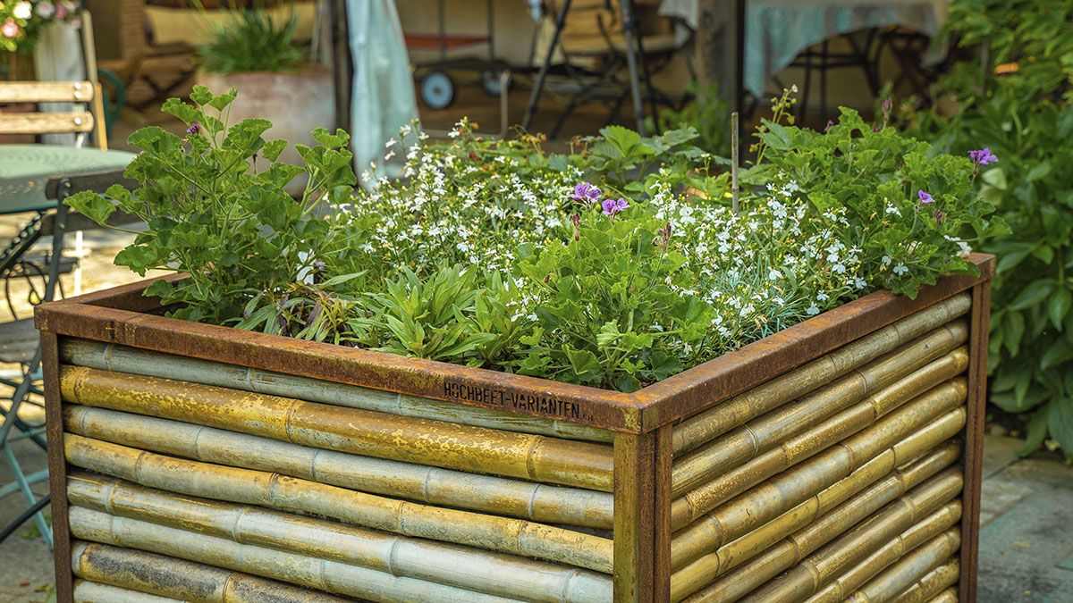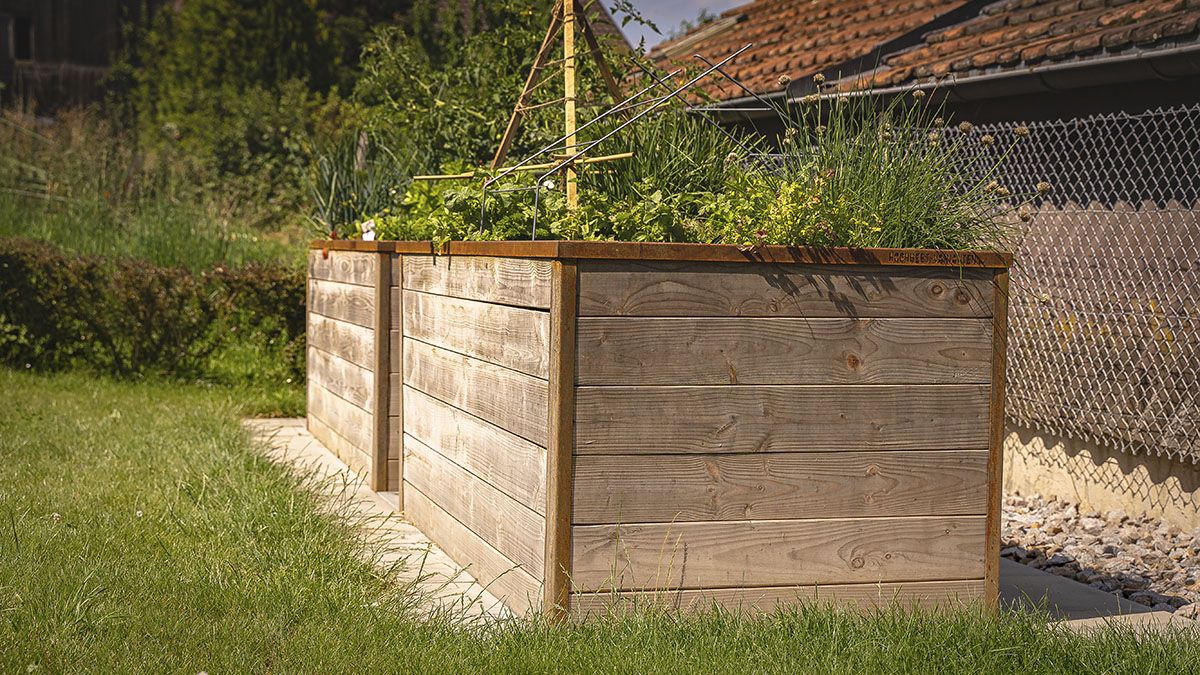 Die Beplankung des Hochbeets kann auf allen Seiten frei gewählt und jederzeit ausgewechselt werden.